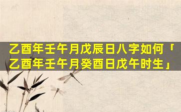 生辰八字 🐛 :乙酉月壬 🐕 戌日 🦋