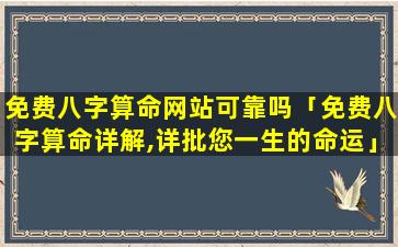 免费八字算 🐯 命网站的可靠性因网站而异。虽然有些网站可能提供准确的解读,但。其他网站可能不准确甚至不 🌴 道德
