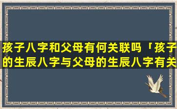 根据五行八字命理学,孩,子八字与父母八字存 🐞 在一定的关联称为五行“相生”或五行“相克”。