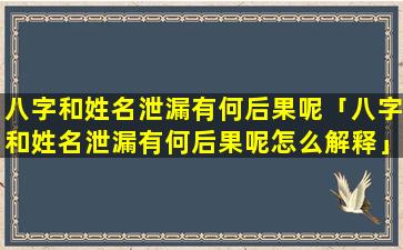 八字和姓名 🦋 泄漏 🍀 的后果
