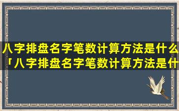 八字排盘名字笔数 🦟 计 🌹 算方法