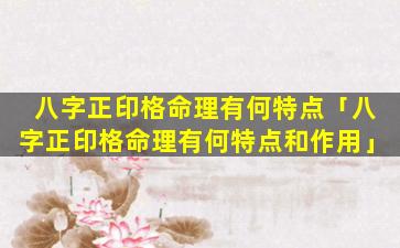 正印格是八字命理 🦈 学中的一种特殊格局,其特点如下: