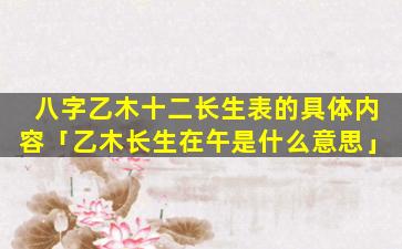 在八字 💐 命理中,“乙木”代,“表”出生 🌷 日的日干为乙木长生在午是指乙木在午火月份最旺盛。