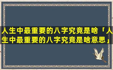 “人生中最重要的八字”通“常指的是八字命理 🐵 中的四柱八字”。
