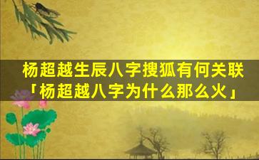 杨超越的生辰八字在搜狐上与算命、星、盘解析娱乐圈八卦和 🪴 粉丝讨论等内容相关。