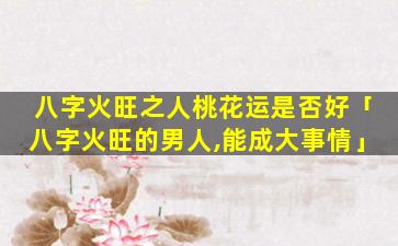综合来看,八,字火旺之 🐅 人桃 🐦 花运是否好需要具体分析八字中火旺的情况以及与其他五行之间的生克制化关系。