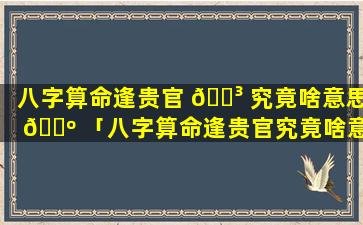 在八字算命中,“逢贵官”是指八字 🐕 中出现了代表官运、地,位,和权势的星神这说明命主有可能在官场 🌷 上取得成就有当官或掌 🌺 权的机会。