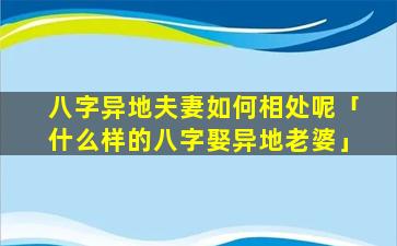 八 🦟 字 🐅 异地夫妻如何相处 🐳