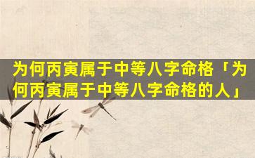 “丙寅属于中等八字命格”的说法并 🐛 不 🌺 准确。