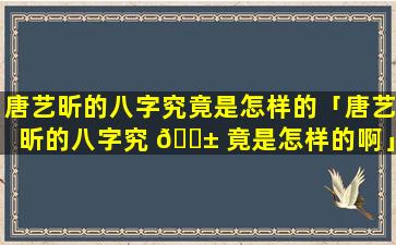大运分析:唐艺昕目前正行癸卯大运 🦅 癸,水,生卯木木气旺盛木。主,事 🦉 。业因此唐艺昕在这步大运 🌼 事业运势不错
