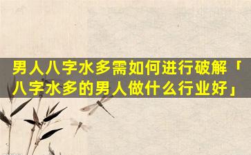 生辰八 🐵 字水多的男人性 🐯 格特征
