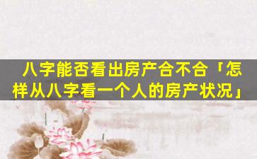 根据八字理论,可,以分析一个人的命格包括财运 🦢 、事、业,感,情和健康 🐳 等方面但是否能够看出房产是否合不合则有待商榷。