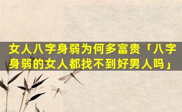 不,八字身弱 🪴 的 🐒 女人并非都找不到好男人。