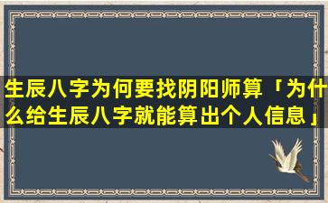 生辰八字找阴阳师算命 🕸 是一种传统文 🐺 化习俗,其背后有以下原因:
