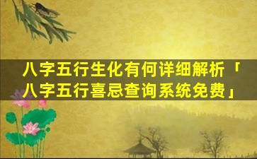 生化平衡五行生 🐎 化关系中,相生,与相克相互作用达到动态平衡。如,果,某 🕷 。一五行,太,旺,或。太弱就会打破平衡导致八字失调因此八字分析中需要通过生化调整使五行阴阳调和气机顺畅