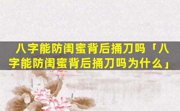 八字是一种占卜方法,并不 🐯 能有效防止闺蜜背后 🐦 捅刀。