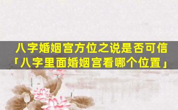 八字婚姻宫方位之说是否可信,目,前在学术界仍存在 🦟 争议尚未得到 🐛 科学证实。