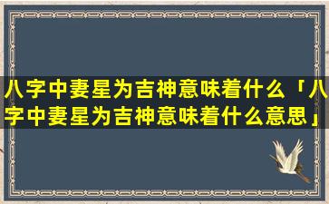 八字中 🐅 妻星为吉神意味着 🦁 :
