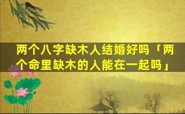 两个八字缺木的人结婚好不好不能一概而论,需要综合考虑以上几个因素。建,议。找 🐦 专业人士进行八字合婚以全面评估婚姻的吉凶