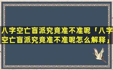 八字 🕊 空 🦢 亡 ☘ 盲派