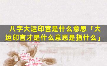 "大"运印官才是一个四柱神煞的术语,用 🦋 于描述 🐴 一个人的 🐠 大运流年。