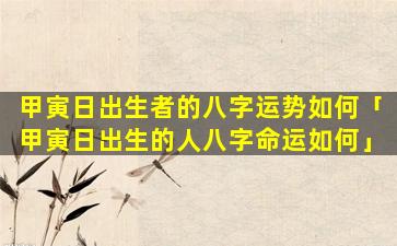 甲寅日出生人 🐅 的命运 🕊 解 🌸 读