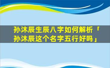 响亮悦耳:"孙"姓简单大气,"沐"字 🐦 给人一种沐浴阳光、温,"暖"的,感觉辰字则代表着时间寓意吉祥如意。