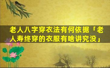 传统习俗中,老人寿终正寝穿 🌾 衣有以 🐞 下讲究: