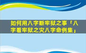 注意:八字断牢狱之灾 🌺 仅是 🐦 一种预测,不能完全确定会发生牢狱 🐧 之灾。