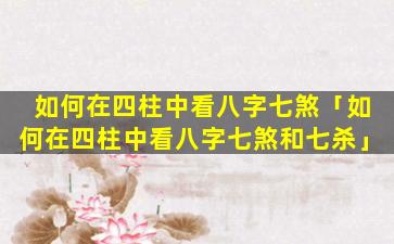 在四柱中 🕷 看八 💐 字七 🦍 煞星