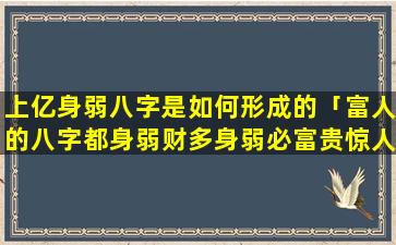 上亿身弱 🐱 八字的 🌵 形成原因如 🌷 下: