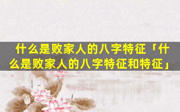 败家 🐅 人的 🐕 八字特 🕷 征: