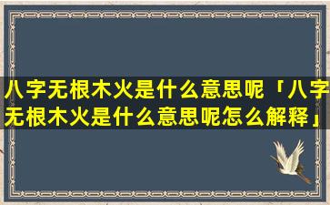 木火无根“木火 🦢 无根”是指八字中没有日支或时支为寅、卯 💐 、巳、午的,即缺少了木 🐕 和火元素的根源。