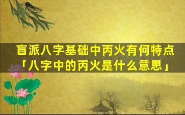 盲 🐎 派八字 💐 中丙火的特性 🌻 :