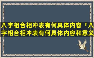解读八字相合 🕷 相冲表可以帮助解读八字命理,了解五行生克制化之间的关系相合表。示,五行相生相助相冲表。示五行相克相制