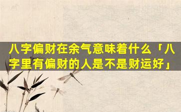 八字偏财在余气意味着命主财运不稳 🦈 定,需,要结合其他因素进行综合 🦟 分析才能得出更准确的结论。