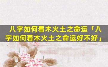 八字看木 🌺 火土之命 🐠 运 🐯 好坏