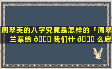 周翠英的八字信 🌾 息并未公开,因此无法提供。