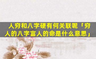 迷信的说 🐬 法认为,人,穷 🐛 和八字硬存在关联具体 💮 如下:
