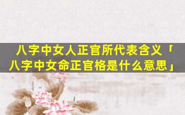 在八字命理中,正官代表的是女命的丈夫、事、业官运等八字中。带,有,正,官,格。说明女命事业心强有领导能 🐝 力和管理才能做事认真负责能够得到周围人的尊重和认可
