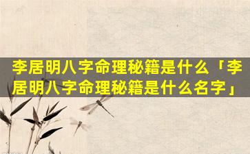 李居明八字命理秘籍是一个错 🌳 误的说法李居明是一。位著名的 🌴 香港风水师和命理学家,但。他没有公 🕊 开过任何关于八字命理的秘籍