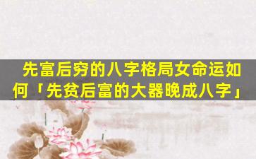 所谓的“先富后穷”八字格局,是,指,命局,中 🌺 财星旺盛但又受克或冲刑导致前期财运 🐈 亨通但后期财运衰退。