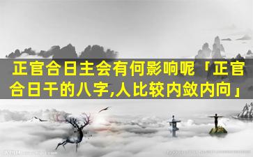 八字命理学 🐶 中,"正"官代表规范、秩序和责任感。当正官与日干代表命(主本人)相,合,时、意。味着正官力量约束了日干导致命主性格方面表现得比较内敛内向