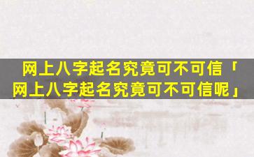 网上八字起 🐳 名的可信度