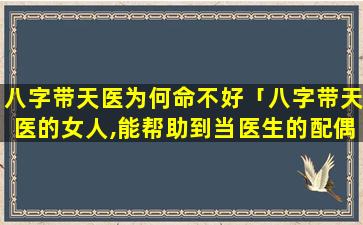 如果一个女人八字带天医,对,于她的配偶是一件很有利的事情尤其当配偶 🐛 是一位医生时天医的女人。可以: