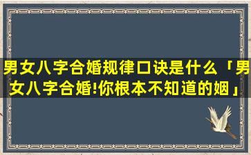 男女八字合 🌿 婚 🐡 规律口 💐 诀