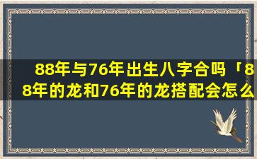 整体而言:88年的龙和年的龙76搭配相合度较高,性,格相 🌺 投事业财运和 🦈 感情运势都不错。需,要。加强沟通和协调共同营造和谐稳定的关系