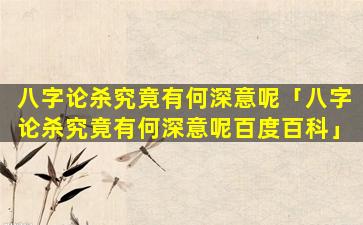 八字论杀的深意在于探索正邪相克、化、凶 🦅 、为吉把握权势洞悉性格,从,而为,命主提供指导和建议帮助其趋吉避凶 🌾 开创美好人 🐞 生。