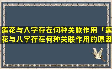 关联作用:基 🐯 于以上 🕸 原因,莲,花与八字命理中存在关联作用具体表现为:
