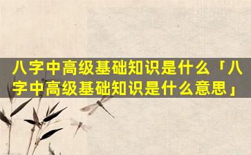 八字中 🐧 高级基础知识是指对八字命理学的深入理 🦉 解,超 🌺 ,越基本概念包括以下内容:
